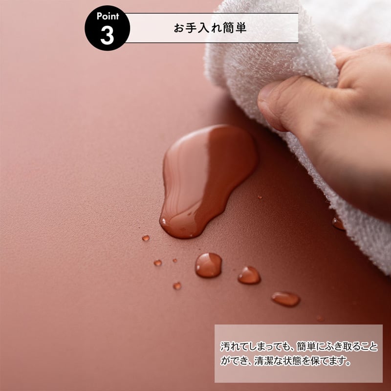 ●汚れてしまっても簡単に拭き取ることができ清潔な状態を保てます。