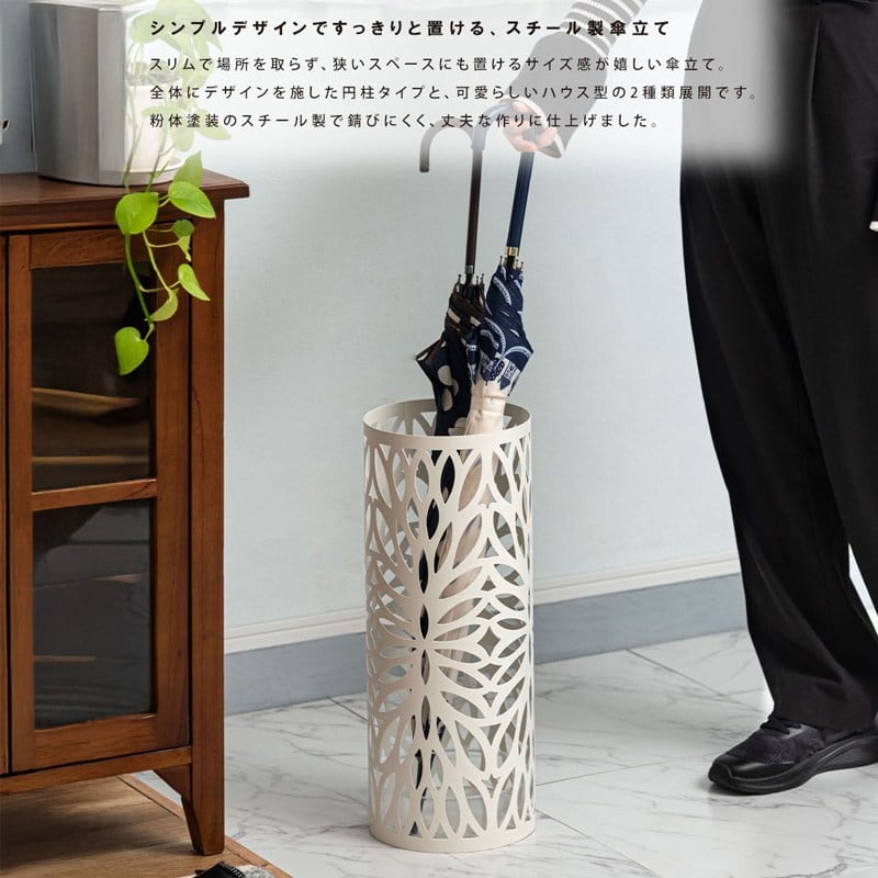 ●シンプルデザインですっきりと置ける、スチール製傘立て。