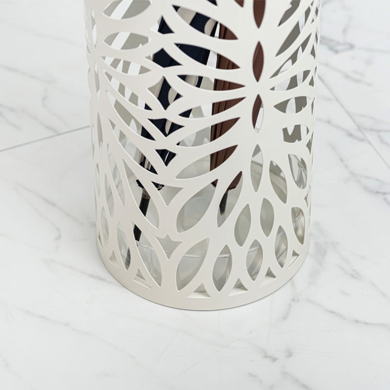 ●本体はリーフ柄で型抜きデザインを施した、オブジェのようなシルエットの円柱タイプ。