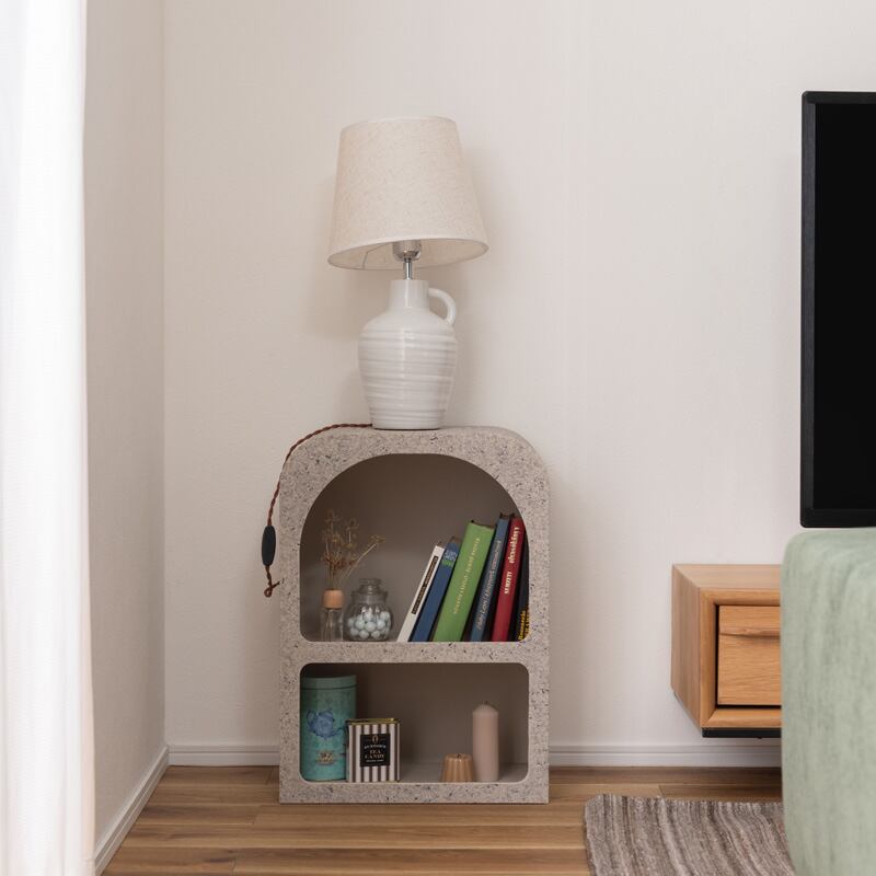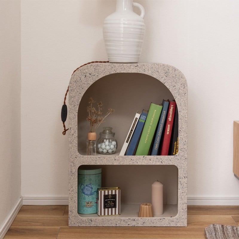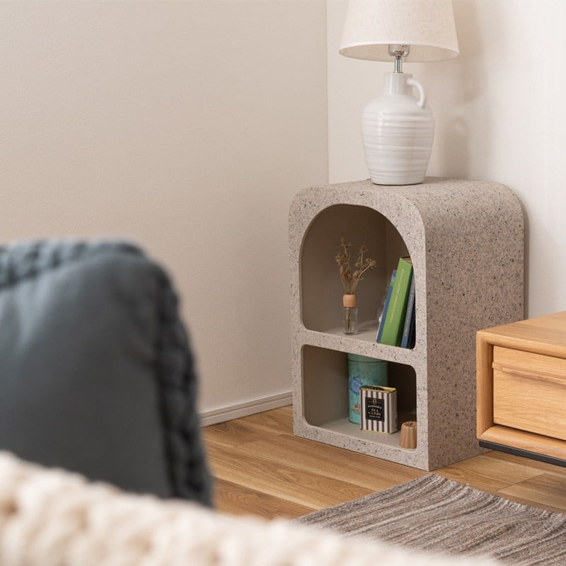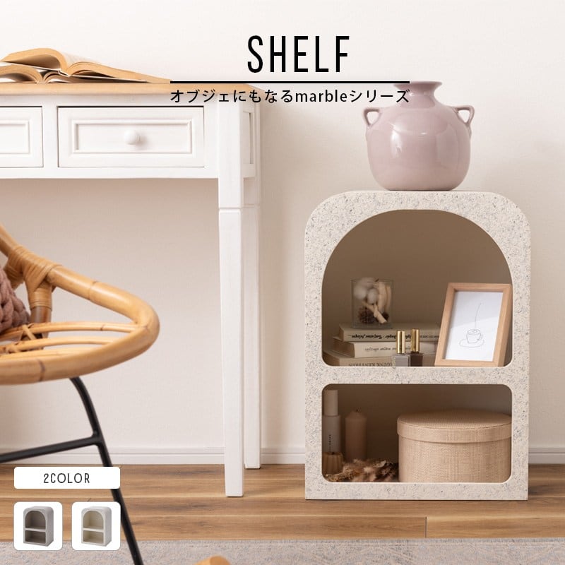 シェルフ 棚 飾り棚 2段 繊維板 おしゃれ シンプル シック モダン テラゾー柄 おしゃれ 角丸