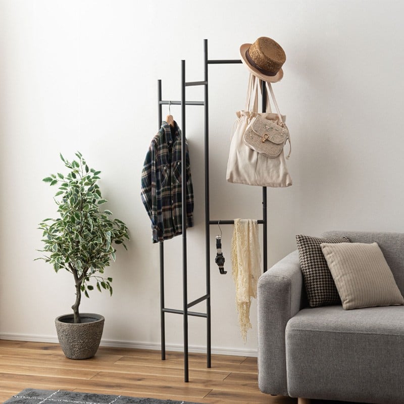 圧迫感を感じさせない、スリムな形状で空間をすっきりと見せてくれるハンガー。