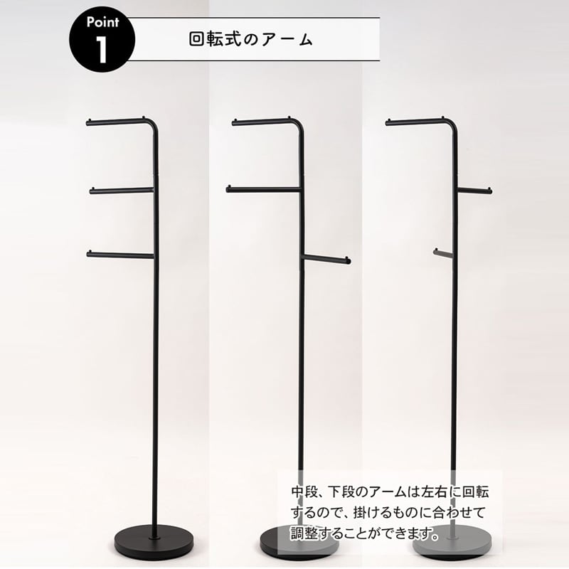 ●中段と下段のアームは左右に回転し、掛けるものに合わせて調整が可能。