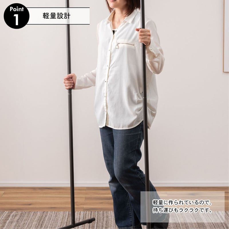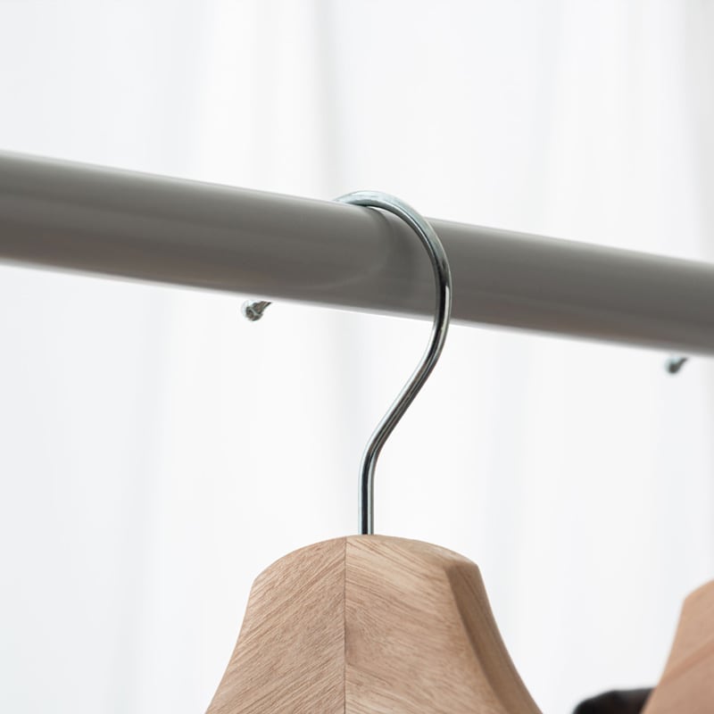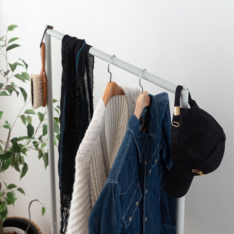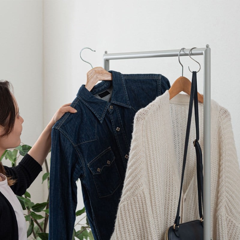 お部屋の雰囲気を選ばず、シャープでスッキリとしたデザインは、掛けられた洋服を品よく見せてくれます。