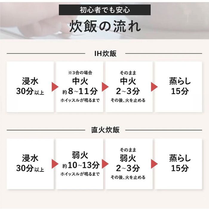 IHで炊くと炊飯器で炊いていた時より美味しくとっても便利です。