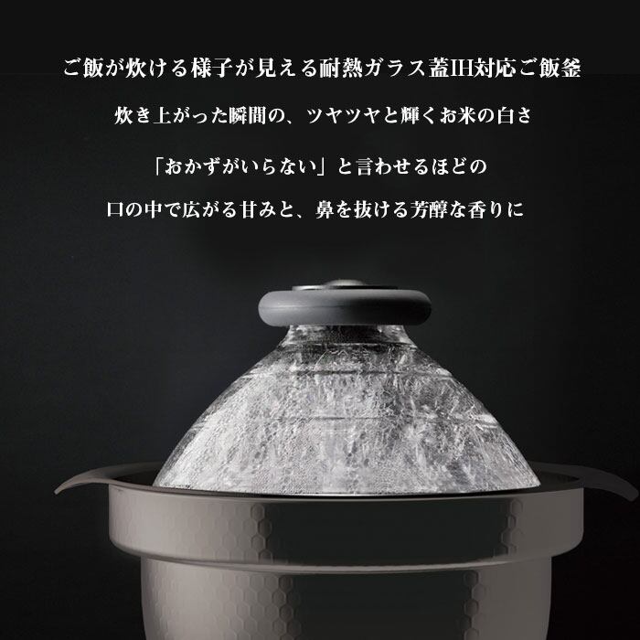 【目】で見る楽しみ: 透明なガラス蓋越しに、お米がふっくらと踊る様子を観察。