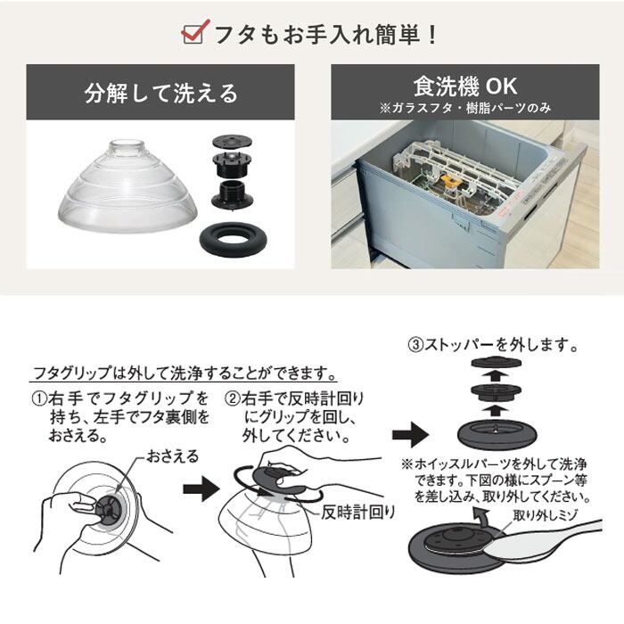 ガラスフタ:耐熱ガラス(耐熱温度差120℃)