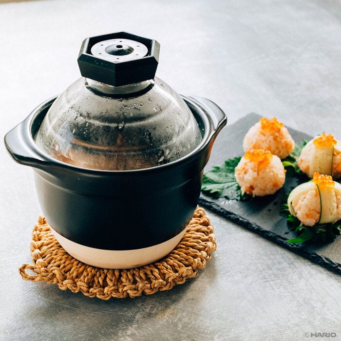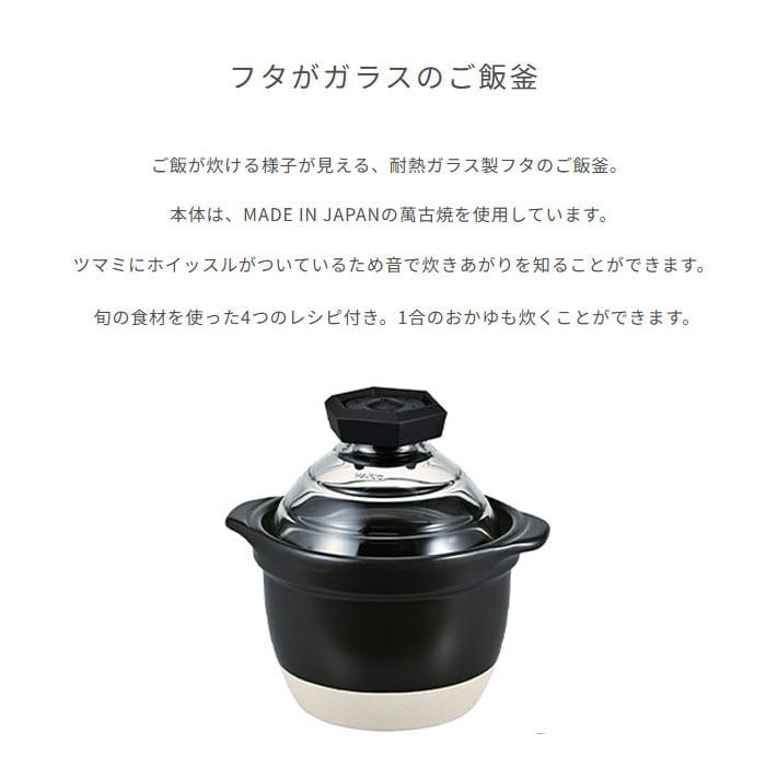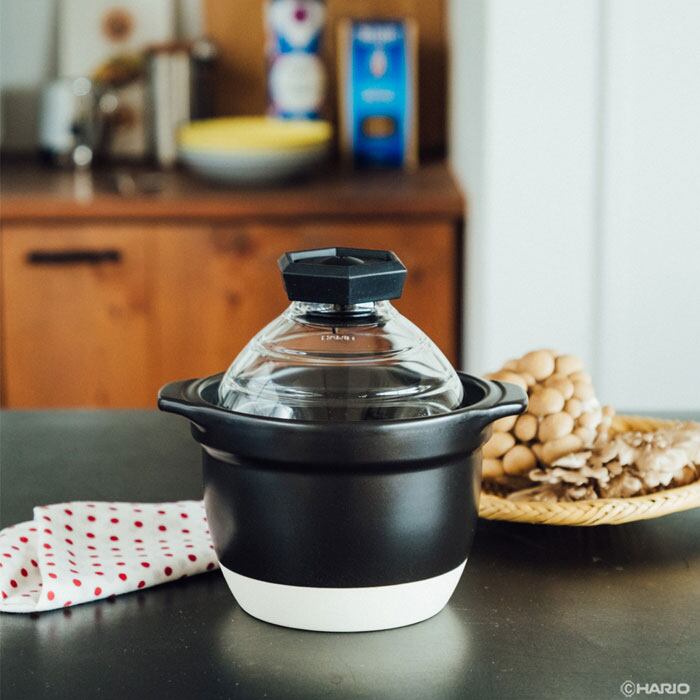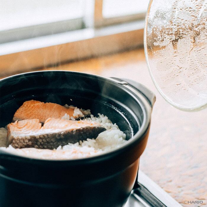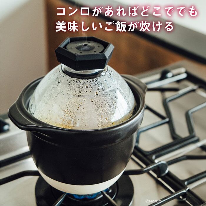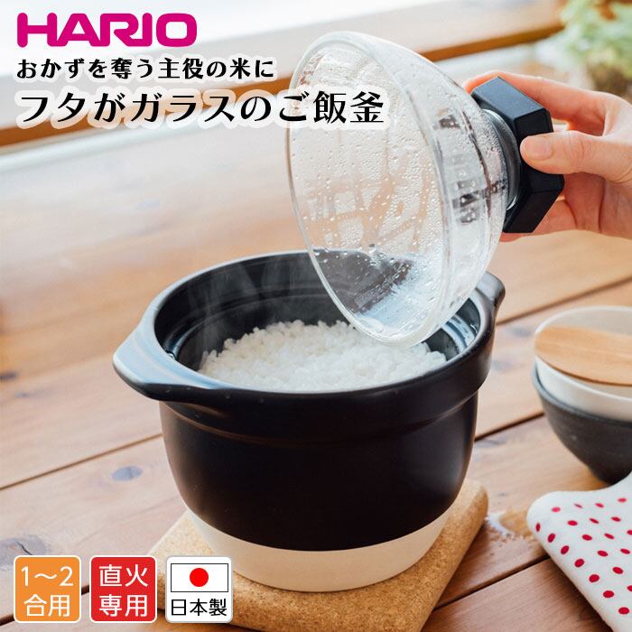 HARIO フタがガラスのご飯釜 1〜2合 ガス火 直火対応 人気 炊飯器 ガラス蓋 日本製 耐熱素材 ふっくら おいしい ご飯 北欧 おしゃれ 人気 gnr-150-b-w