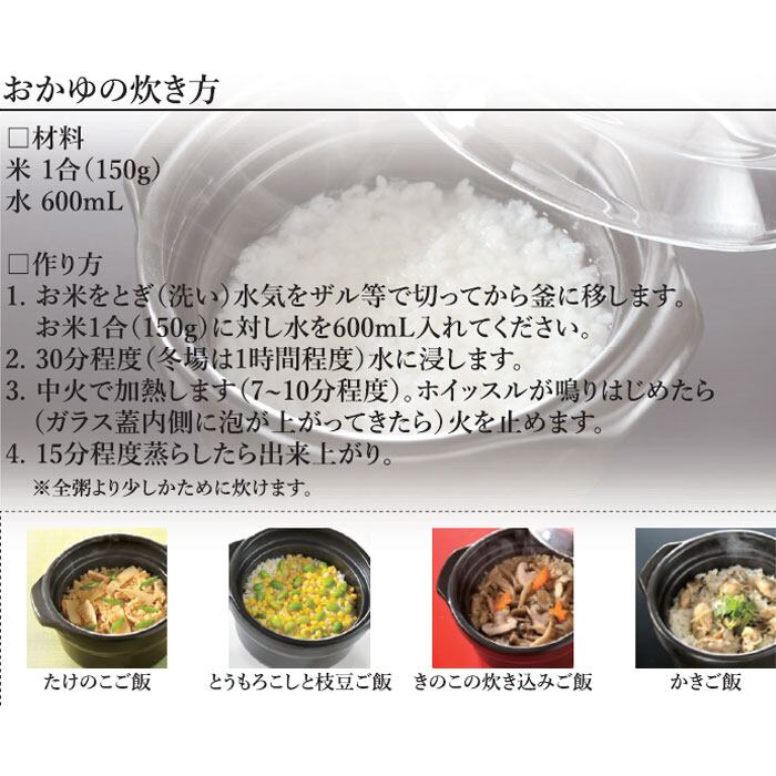釜:耐熱陶器(萬古焼)(耐熱温度差350℃)
